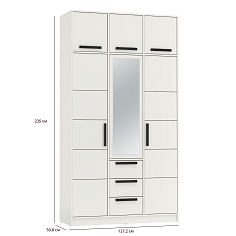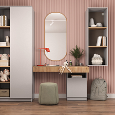 Отличный шкаф для детской, удобный вместительный, много полок. Приятная расцветка – светлое дерево под беленый дуб с нежно-зеленой отделкой. Заказывала в комплекте с кроватью, столом и большой полкой – все здорово сочетается. Сын-подросток тоже остался доволен.