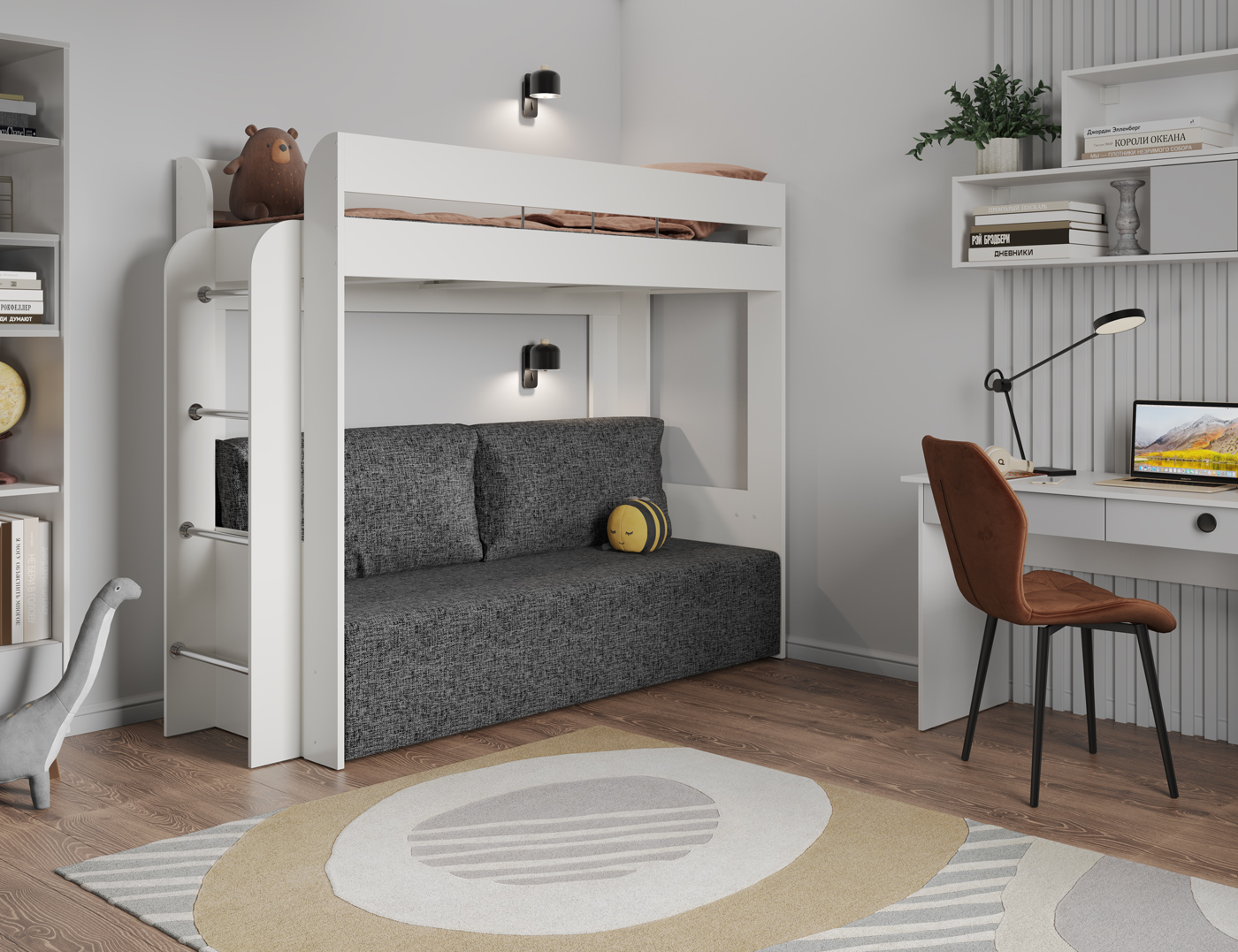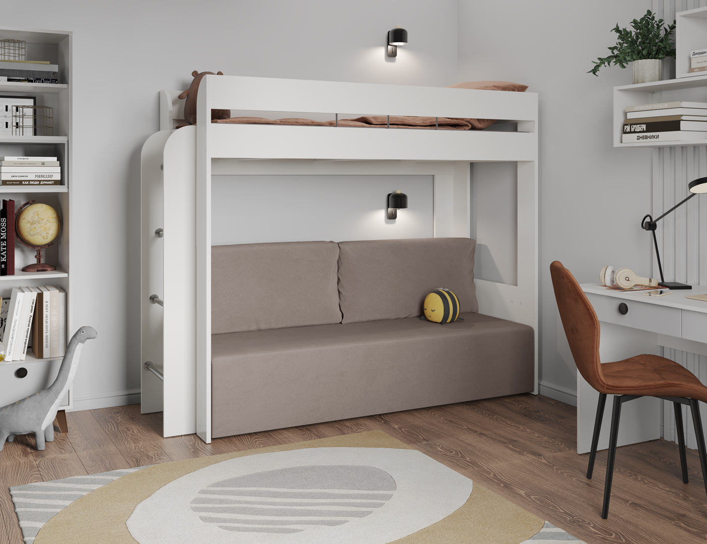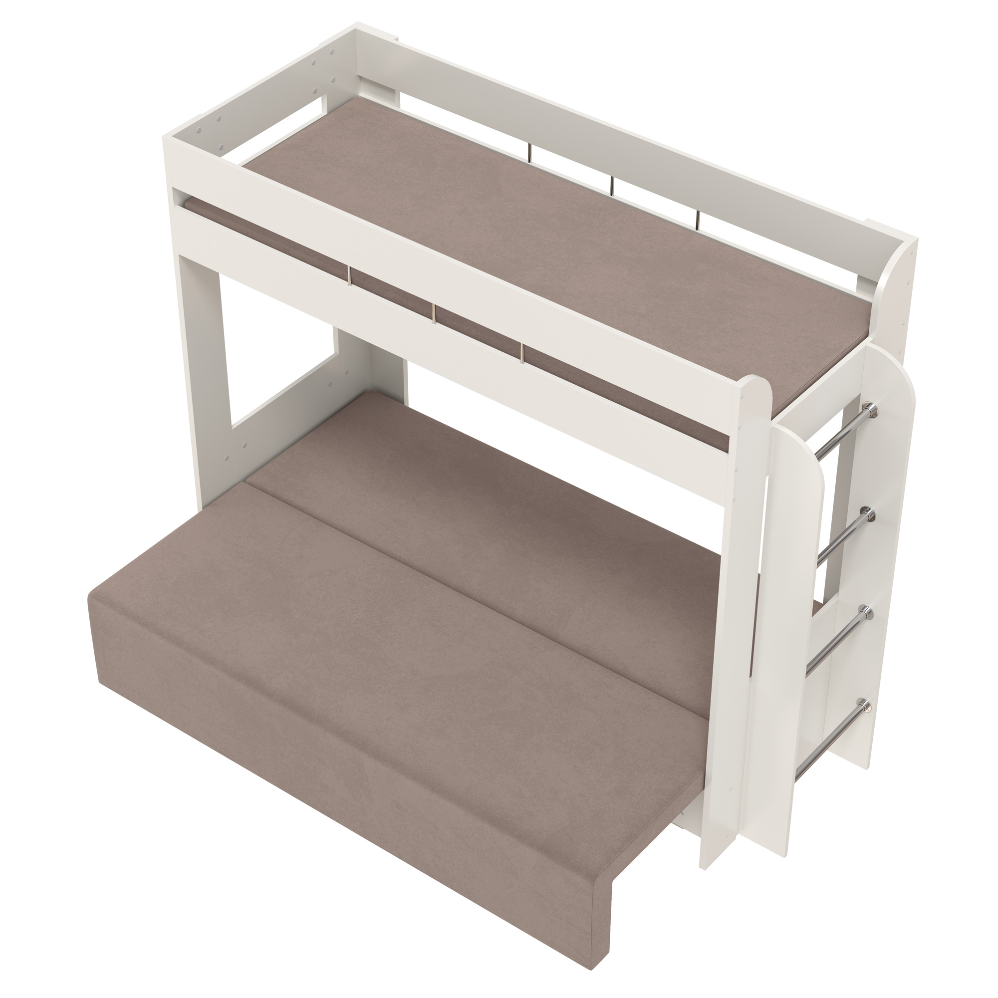 Кровать двухъярусная Немо (белый / ткань: велюр Parma 10 капучино) от российской фабрики Олмеко отлично подойдет для многих квартир. Многолетний опыт в производстве позволил создать стильную, комфортную и доступную мебель с долгим сроком службы. Товар доступен в Нижнем Новгороде. Закажите у нас и получите быструю доставку в любую точку города. При покупке предоставляется гарантия производителя.