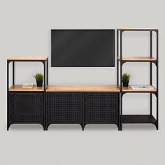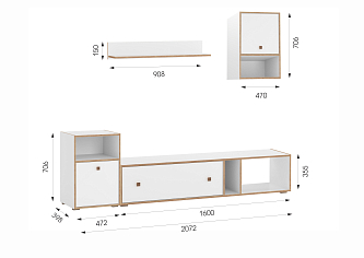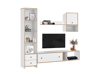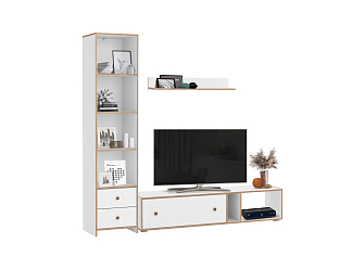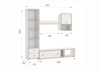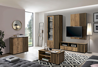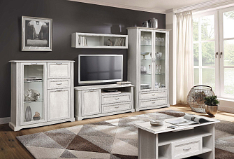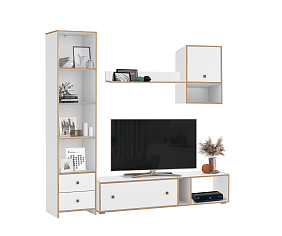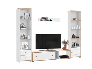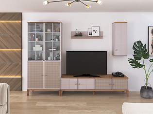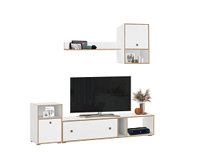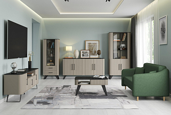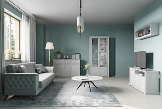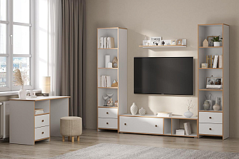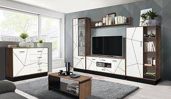 Модульные гостиные состоят из элементов мебели, которые можно комбинировать и создавать единый дизайн. Это лучше организует пространство, как в больших, так и в маленьких комнатах. В качестве отдельных блоков выступают: пеналы, шкафы, другие навесные и напольные конструкции, которые есть и в каталоге интернет магазина.