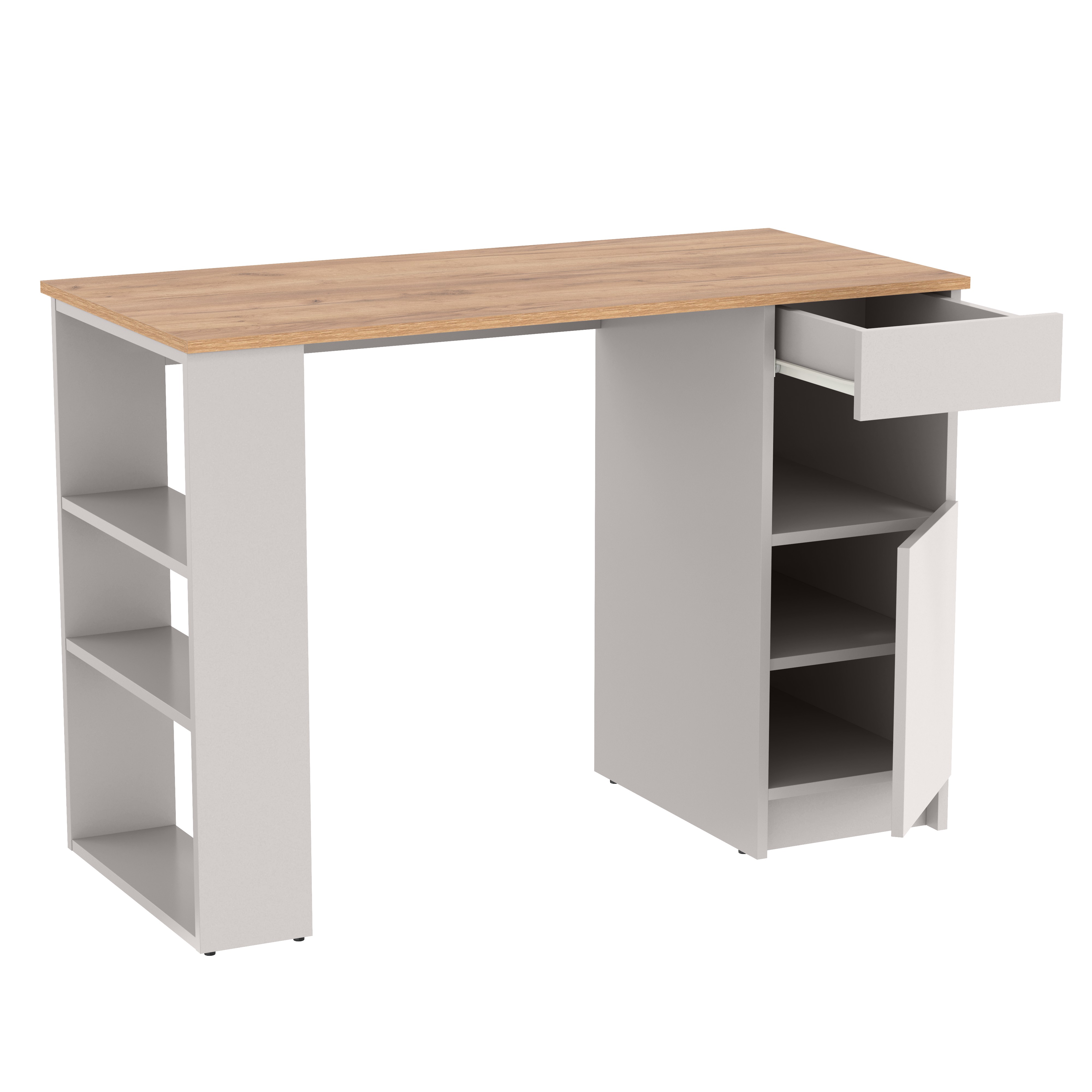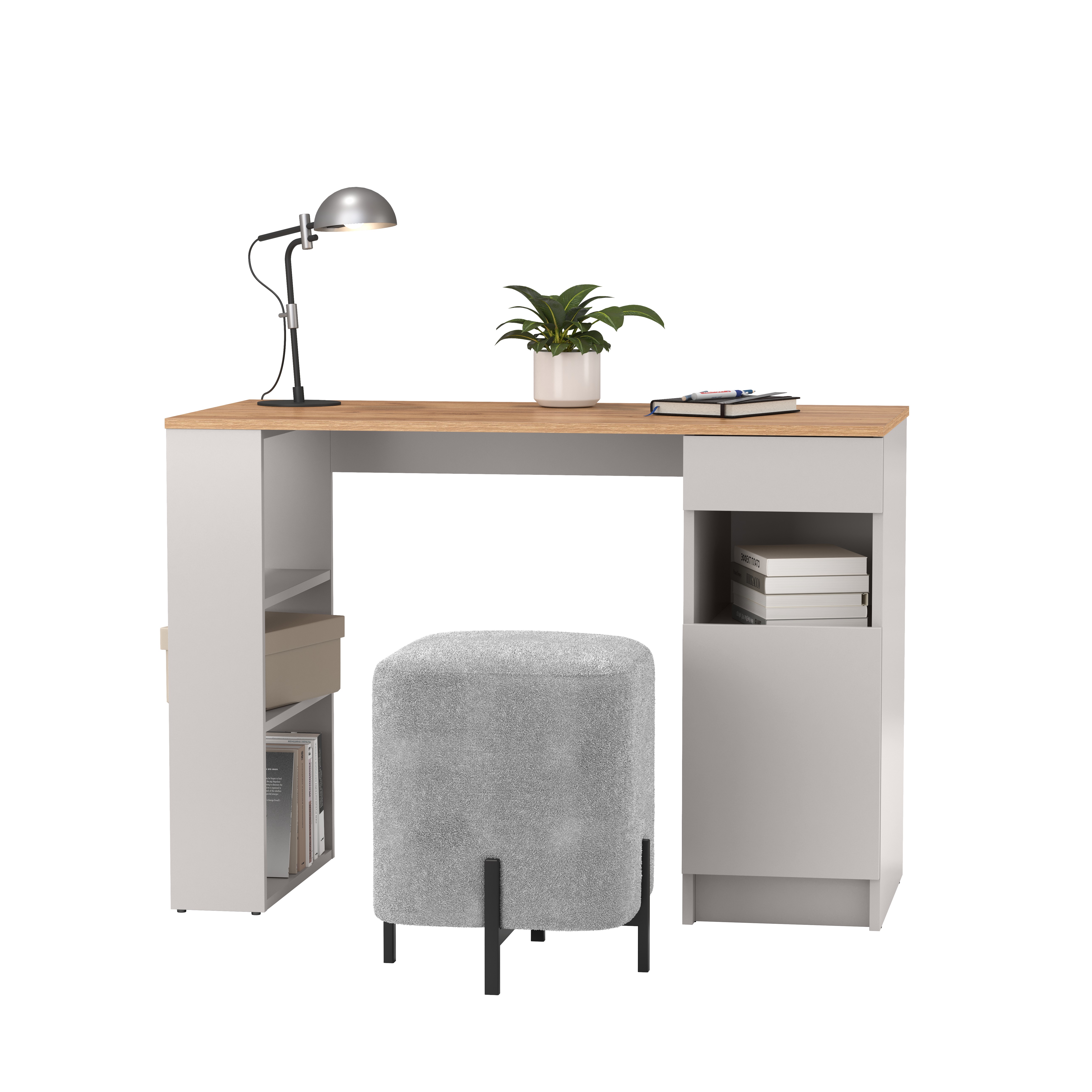 Стол письменный 89.10 Прайм (с тумбой и полками) (кашемир / дуб золотой / ДВПО: серый камень) от известного производителя отлично подойдет для многих квартир. Большой опыт в производстве позволил создать красивую, удобную и недорогую мебель которая прослужит вам долго. Мы продаем мебель в Нижнем Новгороде с гарантией производителя. Закажите у нас и получите быструю доставку в любую точку города.