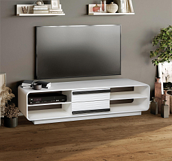 Компактные белые тумбы под ТВ отличаются огромным размерным рядом и вариативностью оформления. Каталог магазина включает модели: