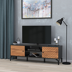 Очень красивая и многофункциональная тумба. Поставили телевизор и по бокам остались места с двух сторон для колонок. В отсеке по середине место занял DVD. У тумбы приятный на ощупь материал. Дизайн элегантный и уникальный. Дверцы легко открываются.