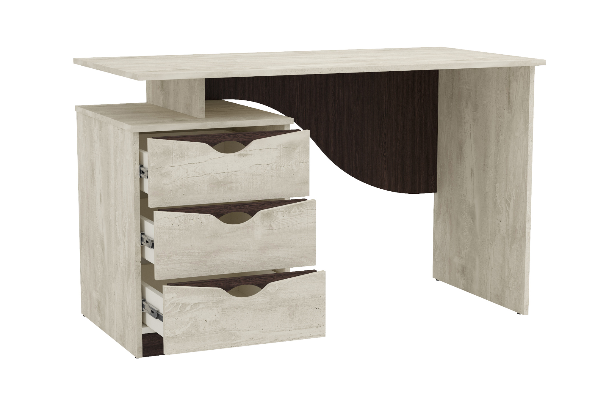 Стол письменный 33.23 Лючия (бетон пайн белый / венге / белый) от российской фабрики Олмеко отлично подойдет для многих квартир. Многолетний опыт в производстве позволил создать стильную, комфортную и доступную мебель с долгим сроком службы. Товар доступен в Нижнем Новгороде. Закажите у нас и получите быструю доставку в любую точку города. При покупке предоставляется гарантия производителя.