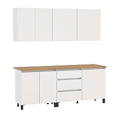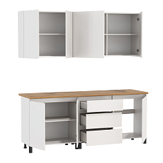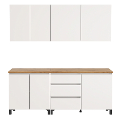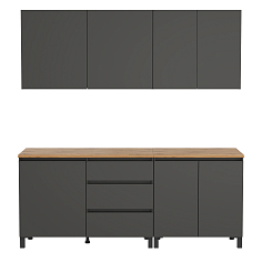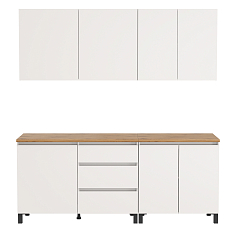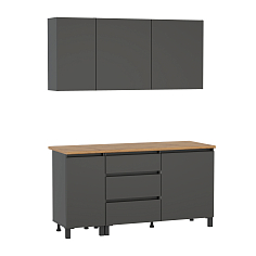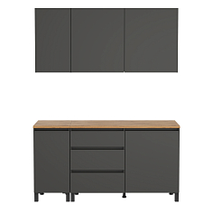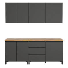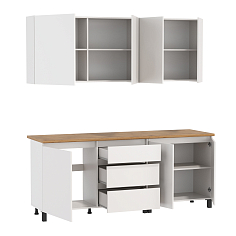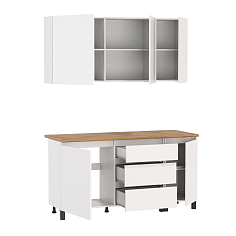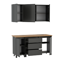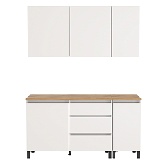 • модульная конструкция, возможность соединения различных элементов. Вы можете комбинировать предметы гарнитура, менять расположение шкафчиков и полок, и для этого не придётся покупать мебель на заказ – достаточно перемещать уже готовые модули.