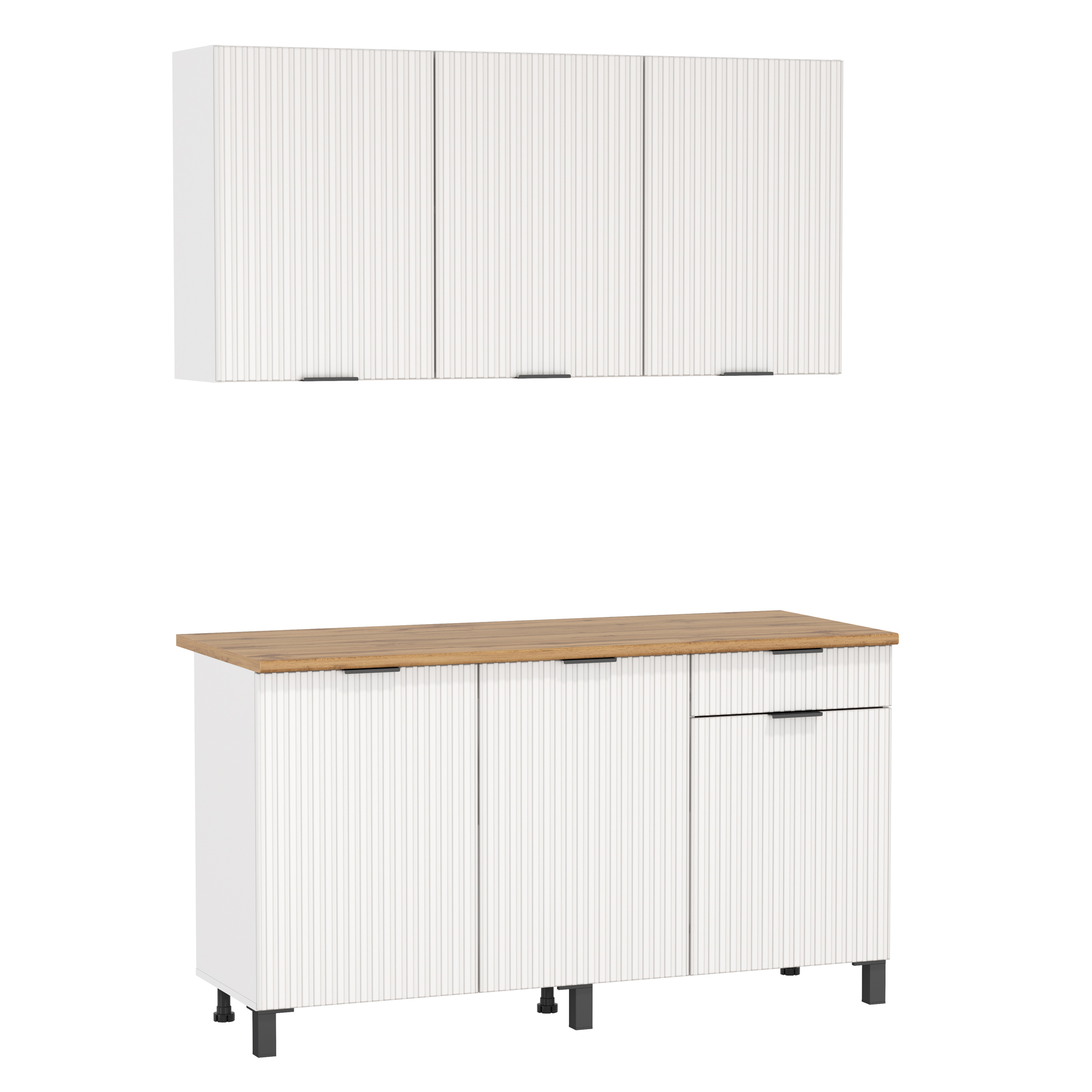 Цвет: белый/фасад МДФ с ПВХ белый матовый фрезерованный/столешница дуб вотан/ДВПО белый