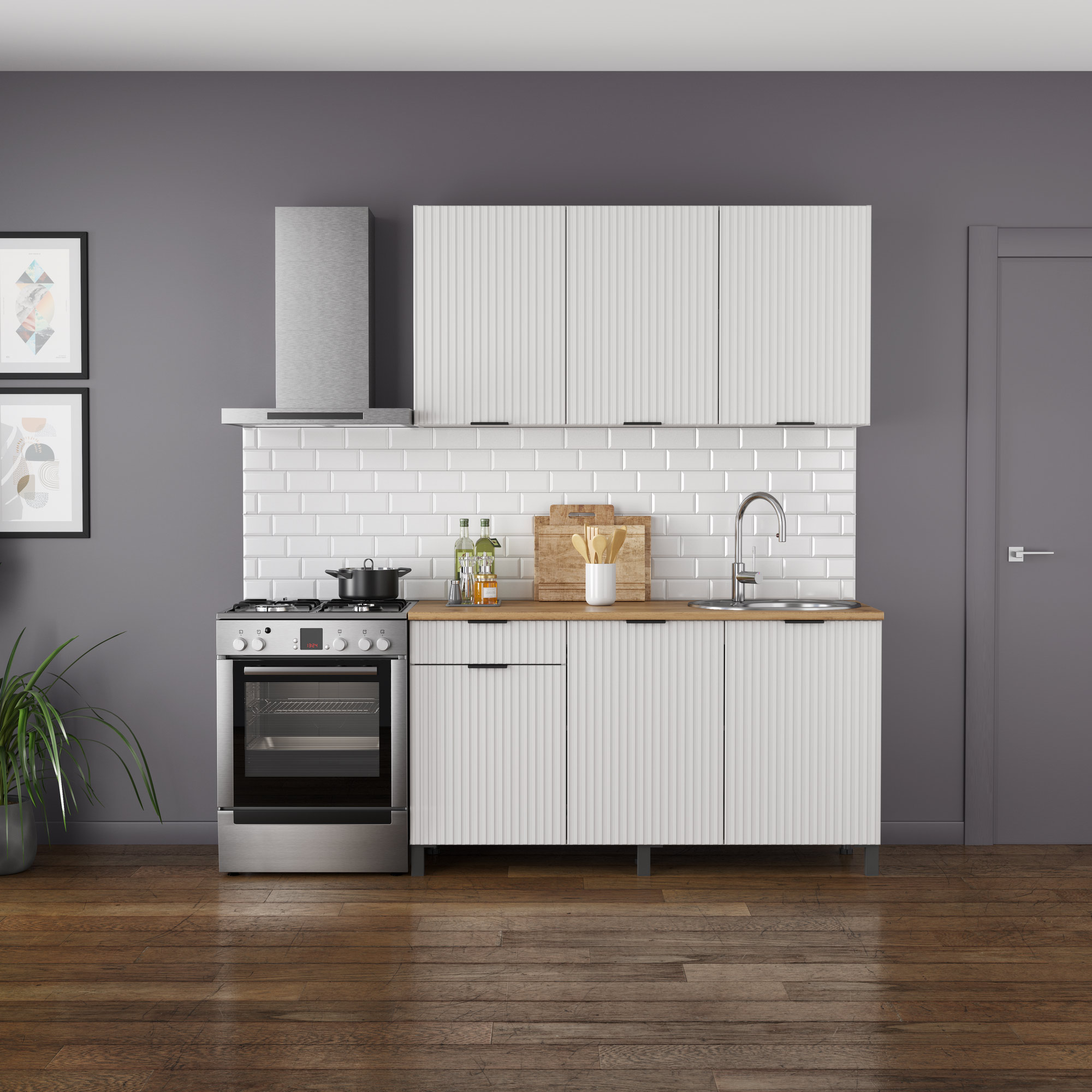Кухня Венера (1500) МДФ (белый/фасад МДФ с ПВХ белый матовый фрезерованный/столешница дуб вотан/ДВПО белый) от известного производителя отлично подойдет для многих квартир. Большой опыт в производстве позволил создать красивую, удобную и недорогую мебель которая прослужит вам долго. Мы продаем мебель в Нижнем Новгороде с гарантией производителя. Закажите у нас и получите быструю доставку в любую точку города.