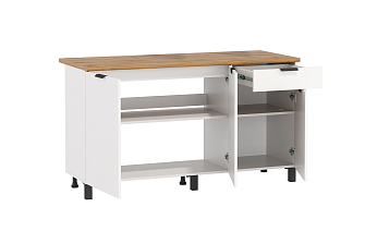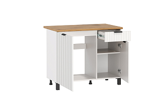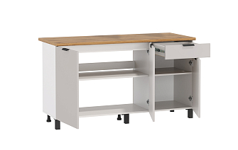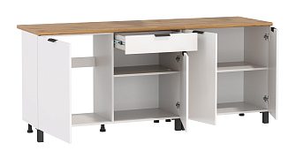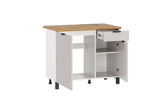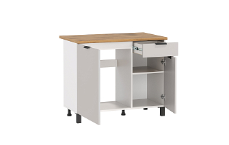 Переехали в частный дом, кухня небольших размеров, хотелось использовать практично каждый см. Решила добавить к имеющемуся, еще один маленький угловой стол. Быстро нашла в Олмеко шкаф-стол, подходящий по высоте, глубине и цвету. Оплатила картой, выслали на следующий день, доставил курьер. Все целое, ни царапин, ни сколов, фурнитура качественная. Шурупы, ножки, заглушки, петли все было в упаковке, ничего не потерялось, некоторые запчасти после сборки остались, производитель положил с запасом. Собирали всей семьей по инструкции, чуть повозились с регулировкой дверцы, а так в принципе, справились быстро. Качество материалов отличное, полочки ровные. Нет посторонних запахов. Не нарадуюсь, спасибо!