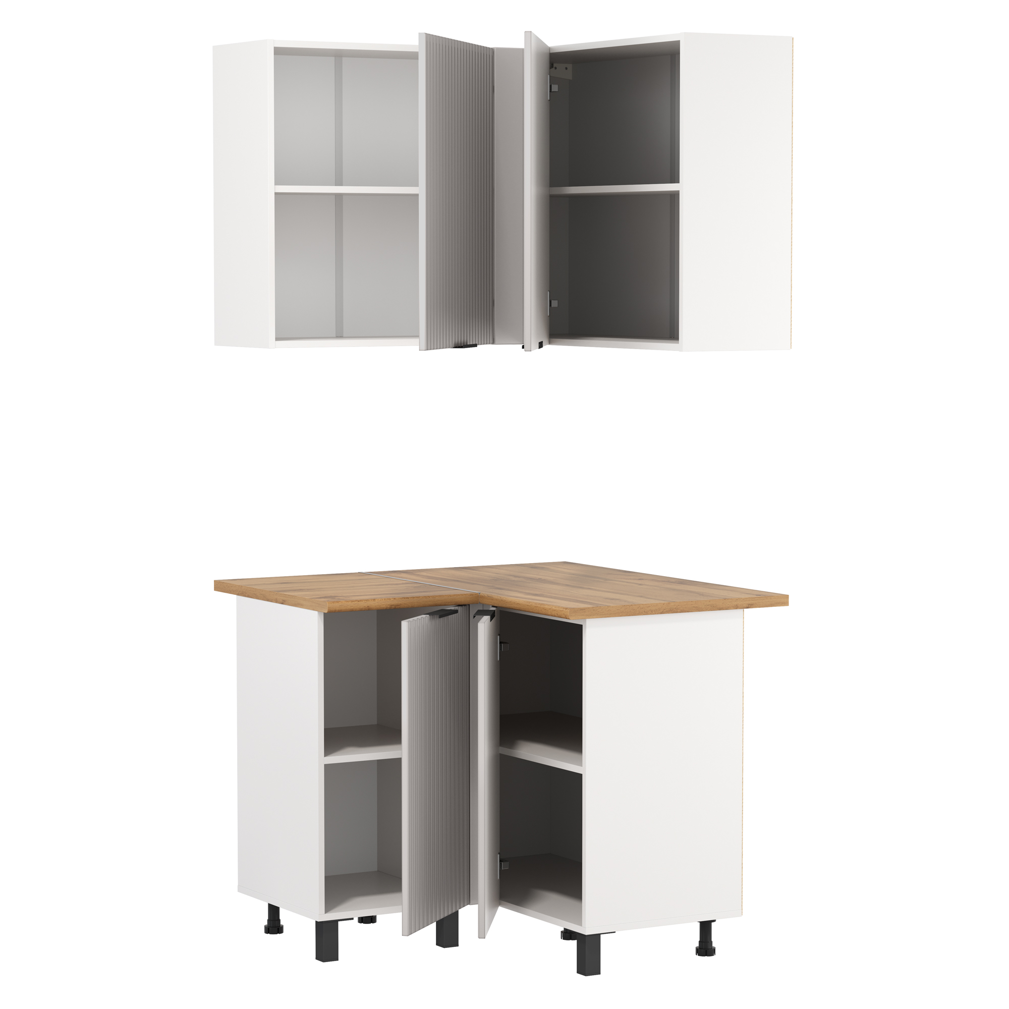 Шкаф угловой Венера (белый / фасад: МДФ с ПВХ кашемир (фрезерованный) / столешница: дуб вотан / ДВПО: белый) от российской фабрики Олмеко отлично подойдет для многих квартир. Многолетний опыт в производстве позволил создать стильную, комфортную и доступную мебель с долгим сроком службы. Товар доступен в Нижнем Новгороде. Закажите у нас и получите быструю доставку в любую точку города. При покупке предоставляется гарантия производителя.