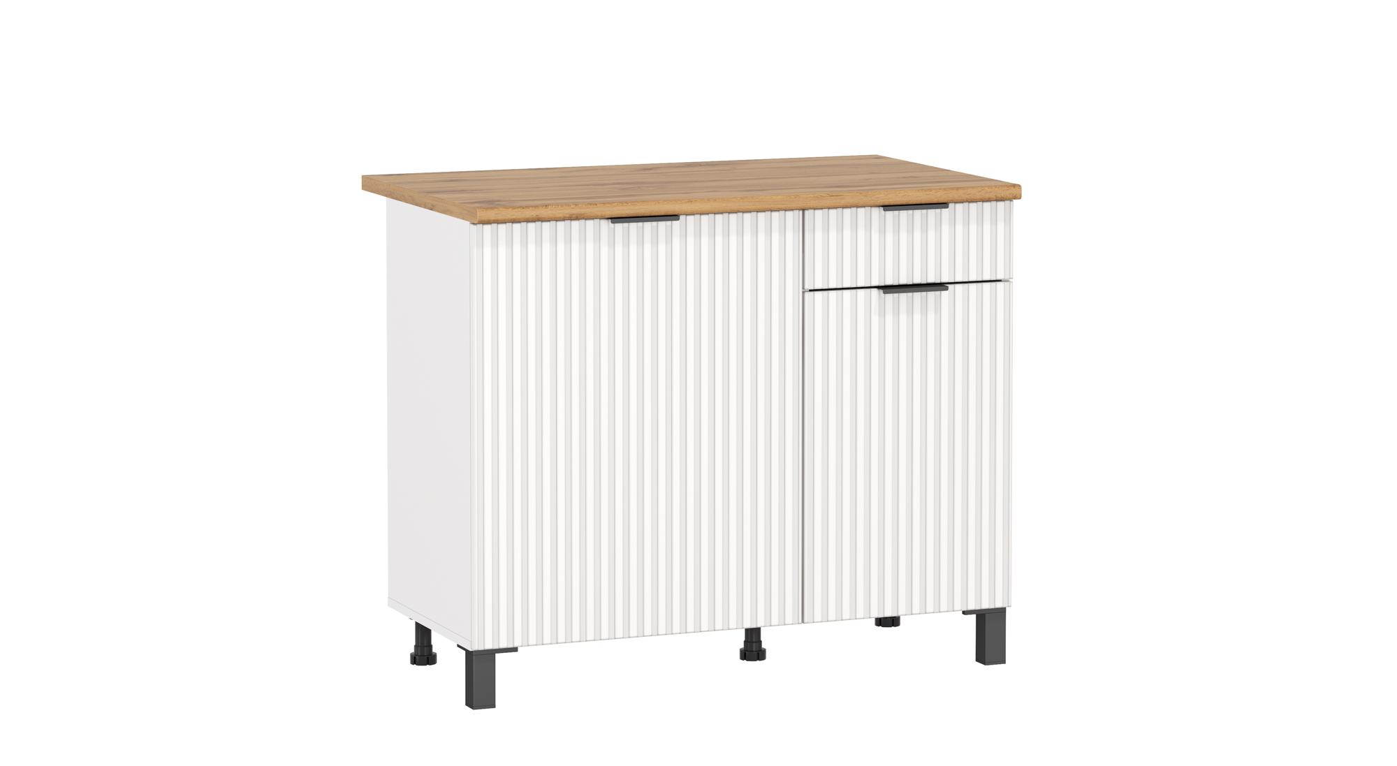 Цвет: белый/фасад МДФ с ПВХ белый матовый фрезерованный/столешница дуб вотан/ДВПО белый