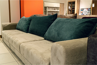 Заказала этот диван в изумрудном цвете. Понравилась его форма – строгая и в то же время необычная. Диван не громоздкий, занимает немного места как в сложенном, так и в разложенном положении. Раскладывается легко. Ткань плотная, качественная и приятная на ощупь.
