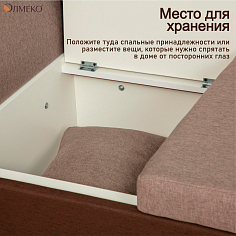Мебель данного вида компактна, возможна к размещению в самых малогабаритных комнатах. Для дизайна использованы контрастная обивка из устойчивых к деформации материалов, декоративная отделка и съемные подушки. Оптимизировать хранение помогают встроенные в конструкцию ящики.