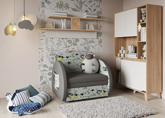 Корпусный предмет в мягкой обивке в сложенном виде представляет собой удобное кресло или мини диван, которые быстро трансформируются в полноценную кровать. Надежные материалы и крепления выдержат любые активные игры. Размер некоторых изделий в разложенном виде позволяет разместиться даже взрослому человеку.