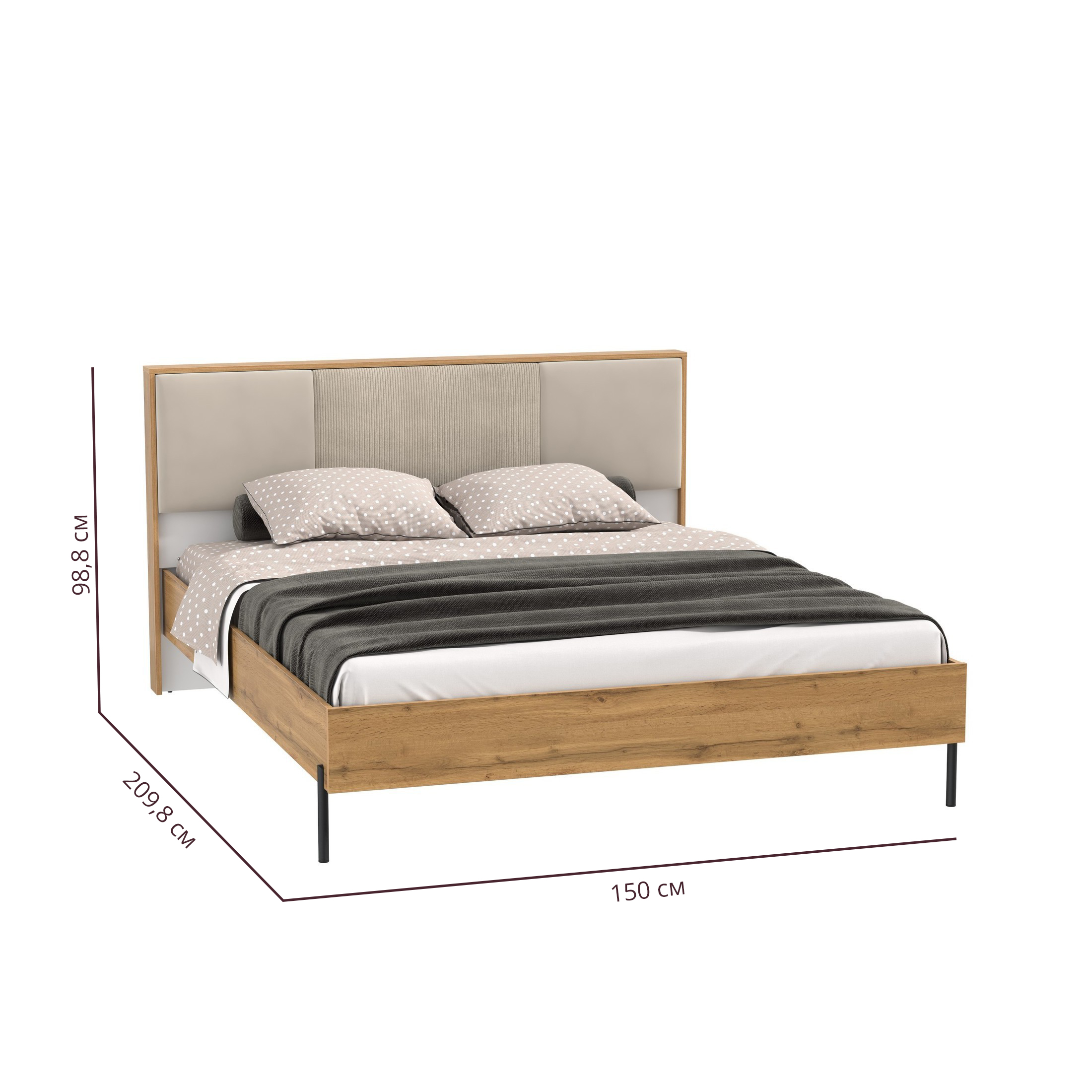 Измеряя ширину кровати, проведите прямую линию между боковыми царгами. Определить оптимальный показатель легко: нужно лечь, свободно раскинуть руки, измерить расстояние от локтя до локтя и с каждой стороны добавить минимум 10 сантиметров. На более узком ложе вы почувствуете себя скованно. Ширина матраса должна быть равной ширине кровати с учетом вычета толщина боковых рам.