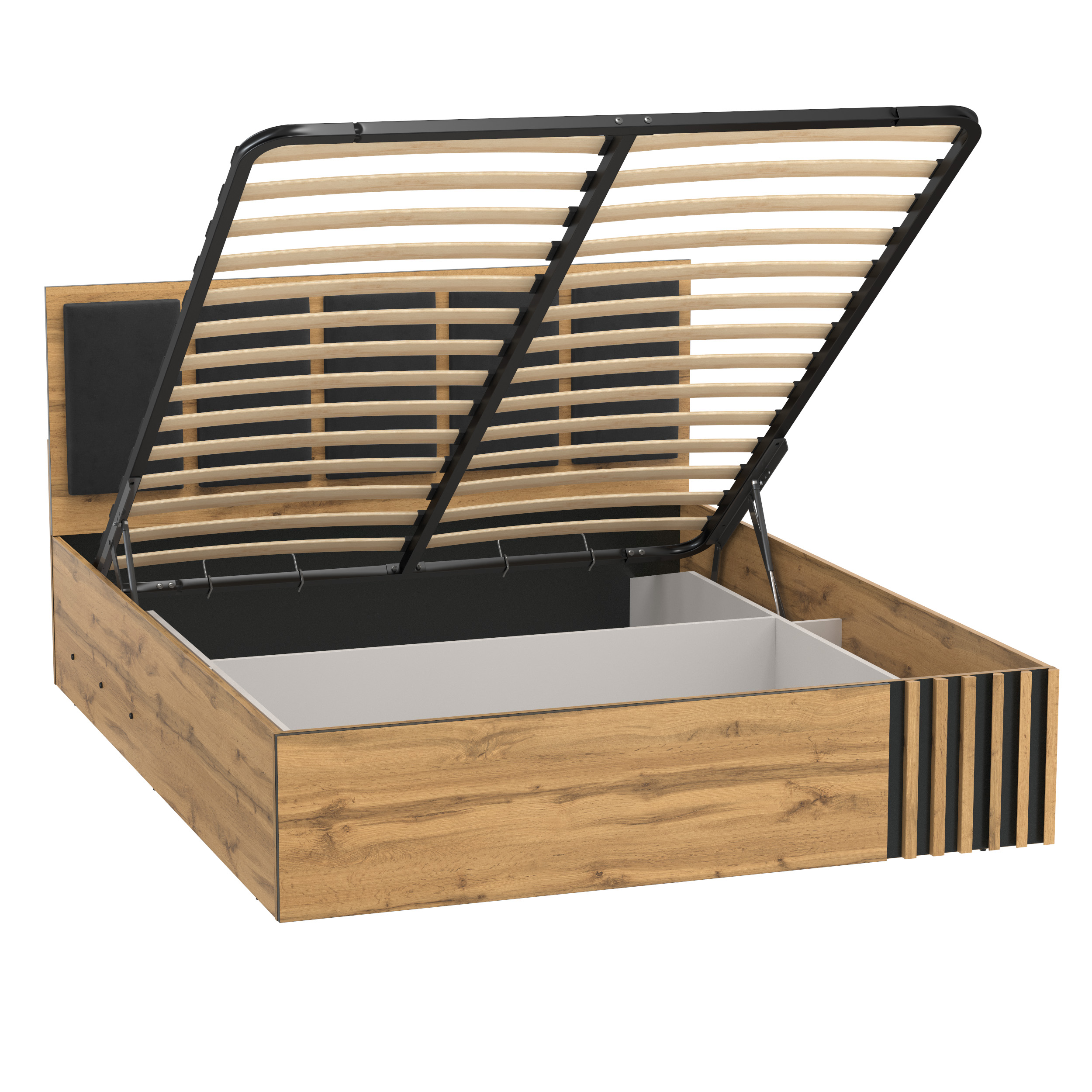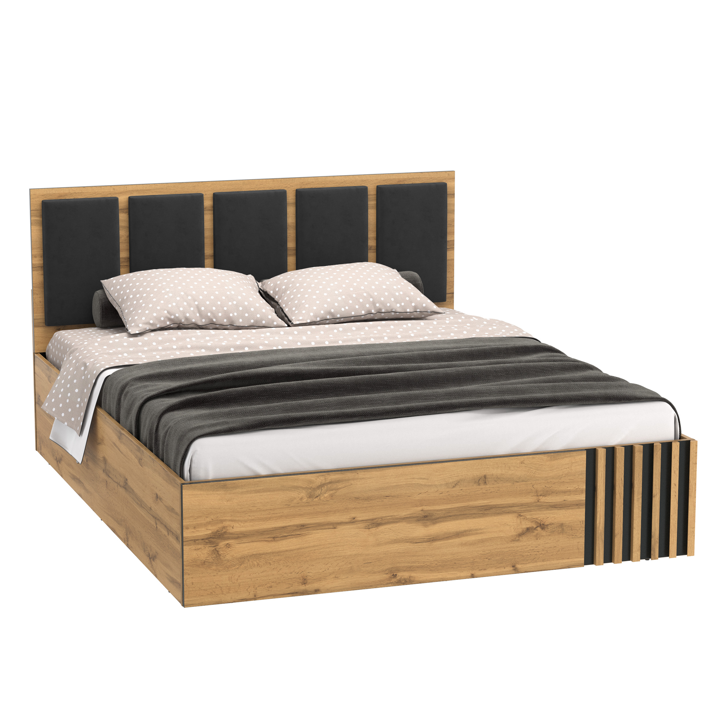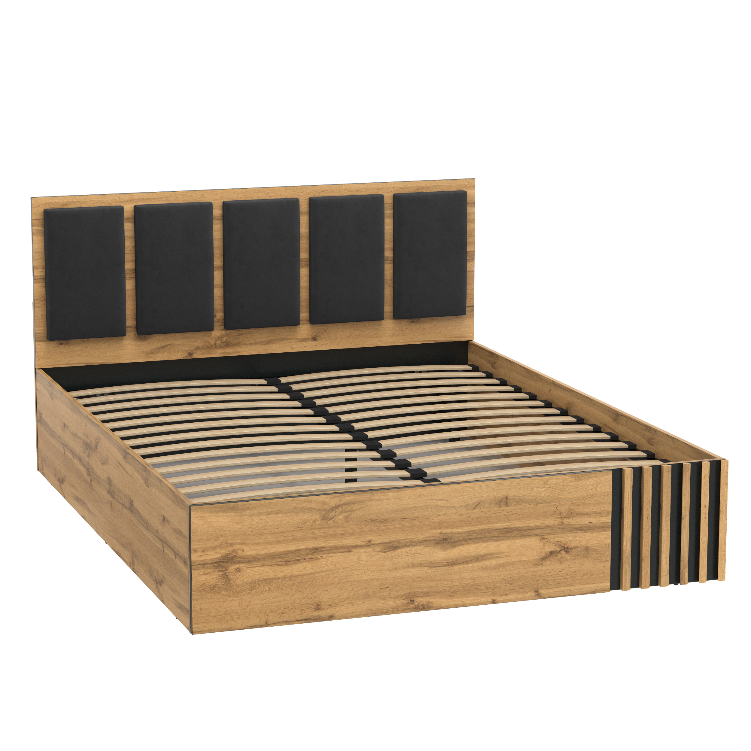 Кровать 51.26 Либерти (ш.1600) с подъемным мех. (дуб вотан/черный/профиль Masa Decor дуб вотан/ткань велюр монако черный) от известного производителя отлично подойдет для многих квартир. Большой опыт в производстве позволил создать красивую, удобную и недорогую мебель которая прослужит вам долго. Мы продаем мебель в Нижнем Новгороде с гарантией производителя. Закажите у нас и получите быструю доставку в любую точку города.