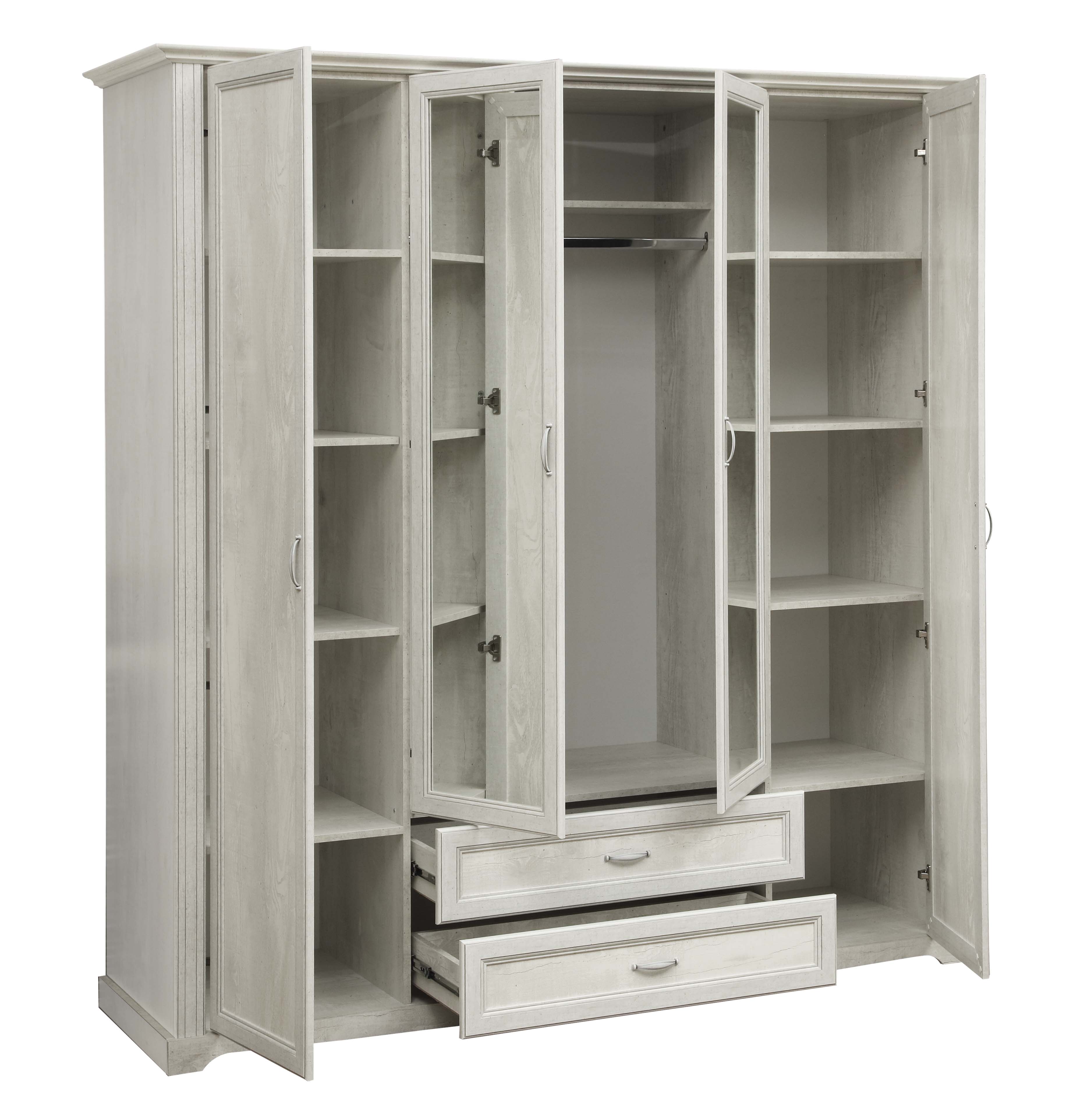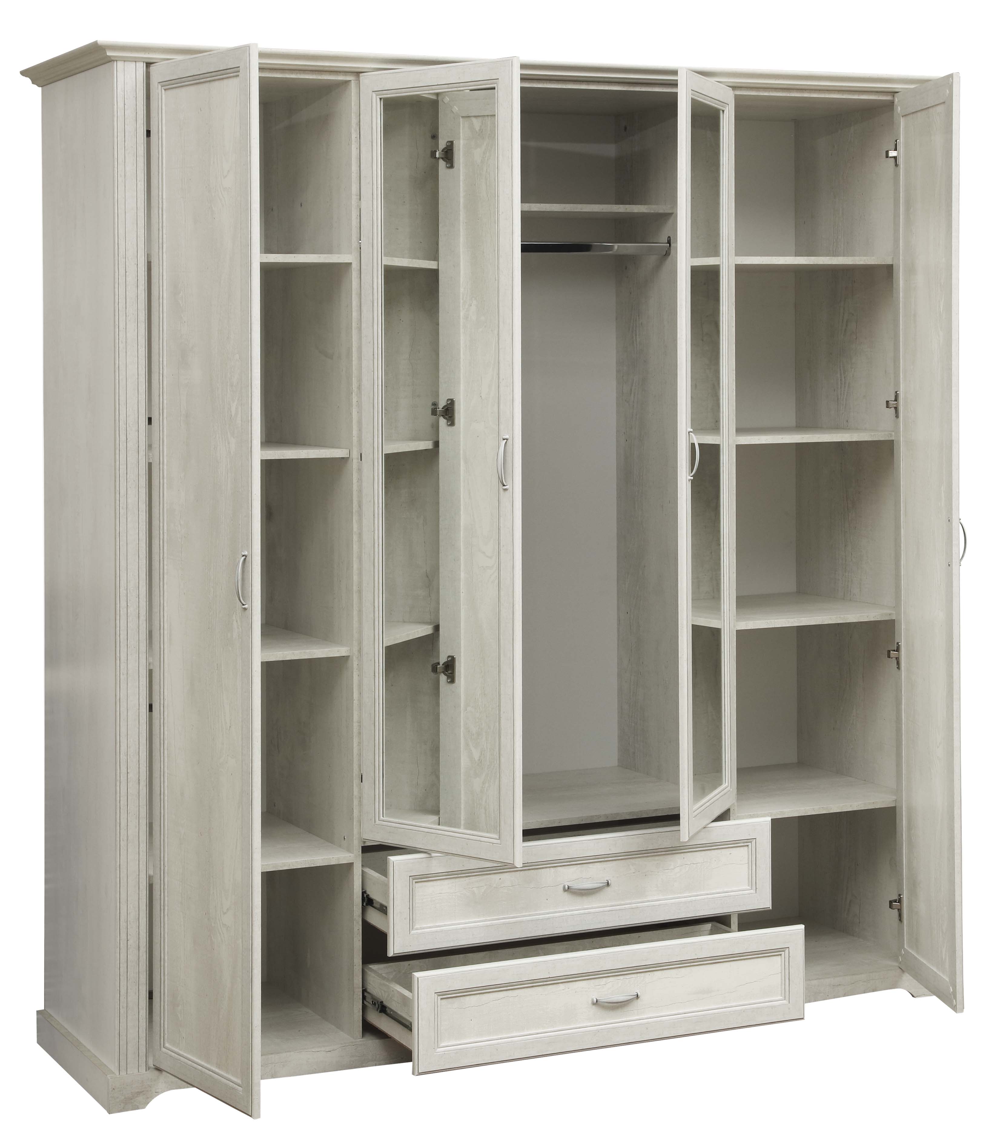 Шкаф для одежды 32.01 Сохо (4-х дв.) с зеркалом New (бетон пайн белый / профиль: бетон пайн белый патина / ДВПО: белый / зеркало) от российской фабрики Олмеко отлично подойдет для многих квартир. Многолетний опыт в производстве позволил создать стильную, комфортную и доступную мебель с долгим сроком службы. Товар доступен в Нижнем Новгороде. Закажите у нас и получите быструю доставку в любую точку города. При покупке предоставляется гарантия производителя.