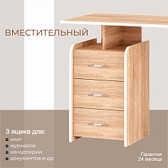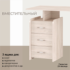 Удобный, вместительный компьютерный стол для школьника. Можно и учебники поставить, и тетрадки положить. Ящики закрываются легко. Доводчиков нет, но и цена небольшая. Нравится, что предусмотрена подставка для клавиатуры. Плюс сочетание цветов интересное.