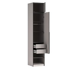 Для меня очевидны преимущества этой модели: во-первых, стоимость и небольшие габариты, во-вторых, изысканный стиль и надежный материал, из которого он изготовлен. Можно долго перечислять его достоинства, этот шкаф -– отличный вариант и вписался в спальню очень гармонично.